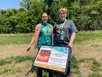 Start by visiting one of the parks where our story trails are located! Enjoy the sights, sounds and fun available at those parks. Then, head to the first signpost of the story trail located at that park and follow the trail to read the next page of the book at each marker along the way. Even better, our staff changes the story roughly once per season, so you can visit year-round.